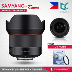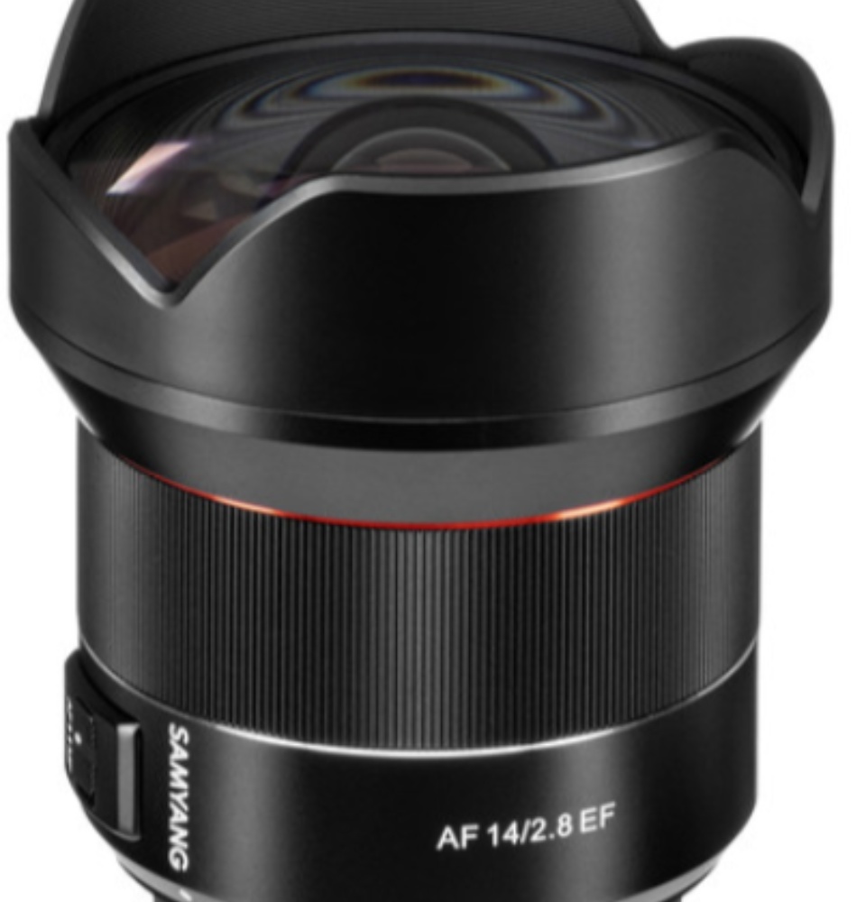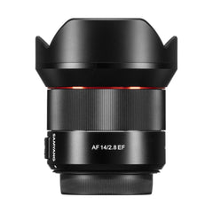 - Suitable for landscapes, nature, and astrophotography, the Canon EF-mount AF 14mm f/2.8 from Samyang is a bright ultra-wide prime characterized by its autofocus design and immense field of view. The optical design features one extra-low dispersion element, two aspherical elements, and four high refractive index elements, which help to reduce a variety of aberrations and distortions for greater sharpness, clarity, and color rendering. An Ultra Multi-Coating has also been applied to individual elements to suppress lens flare and ghosting for improved contrast when working in strong lighting conditions. Complementing the optical design, the autofocus system makes use of a lightweight focusing group for quick and quiet performance that benefits both photo and video applications. Additionally, the lens also has an all-metal housing and is weather-sealed for use in inclement weather conditions.