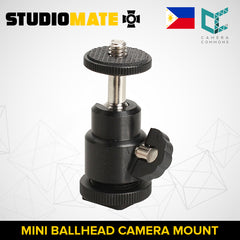 STUDIOMATE SM46 Mini Ballhead Camera Mount with Hotshoe and 1/4" Screw Mount for Tripod 360 Swivel