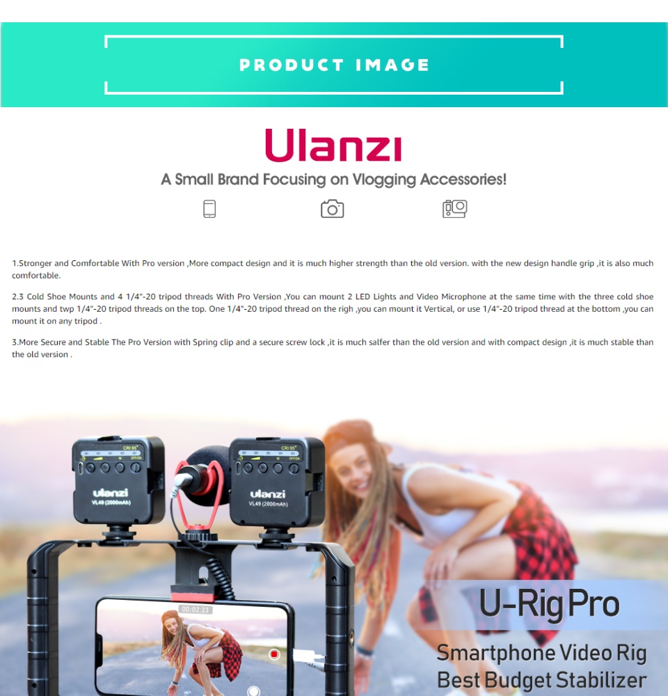 Ulanzi U-Rig Pro Smartphone Rig w 3 Shoe Film making Case Handheld Phone Video Vlog Vlogging Livestream U Rig Pro